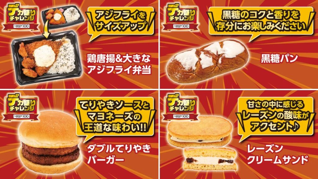 ローソンストア100は、1月28日から2月24日までの4週間、「デカ盛りチャレンジ」キャンペーンを全国の店舗で実施すると発表した。