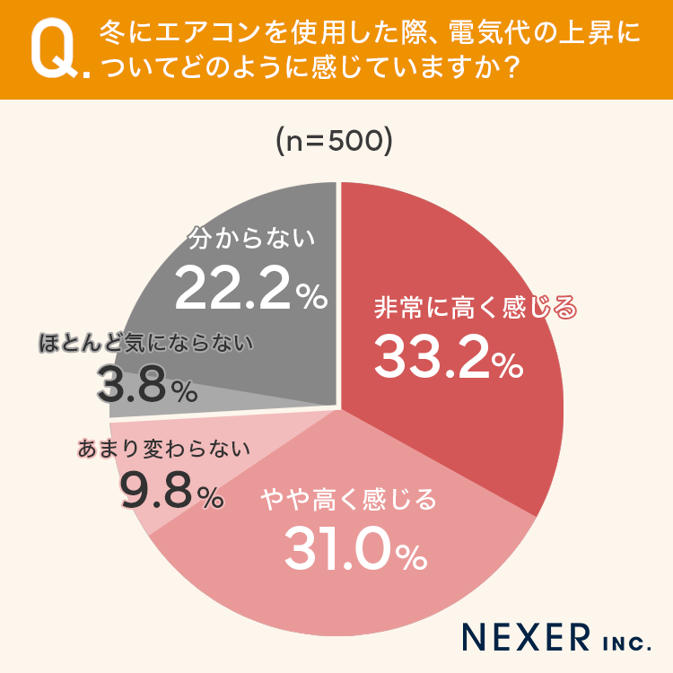 NEXERは、エアコン・家電通販の「たまたま」と共同で、全国の男女500名を対象に「エアコンと電気代」についてのアンケートを実施し、その結果を公表した。