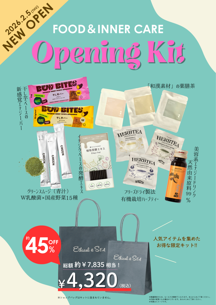 また開店を記念し、Ethical&SEAの人気商品を詰め合わせた限定キットを、通常の約45%オフで販売するとのことだ。