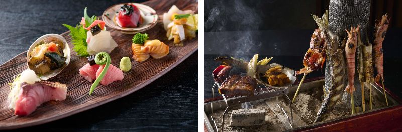 飲食について、三浦半島の魚介を中心に、日本全国の旬の食材を組み合わせた日本料理を提供するという。館内レストランの入り口に生簀を設け、地元の魚介や旬の素材を用いたコース料理を用意。メイン料理は魚や海老などを素材として炭火焼きで提供するという。レストランは1階に配置し、プライバシーに配慮しつつ海を海を見渡せる空間にするとしている。