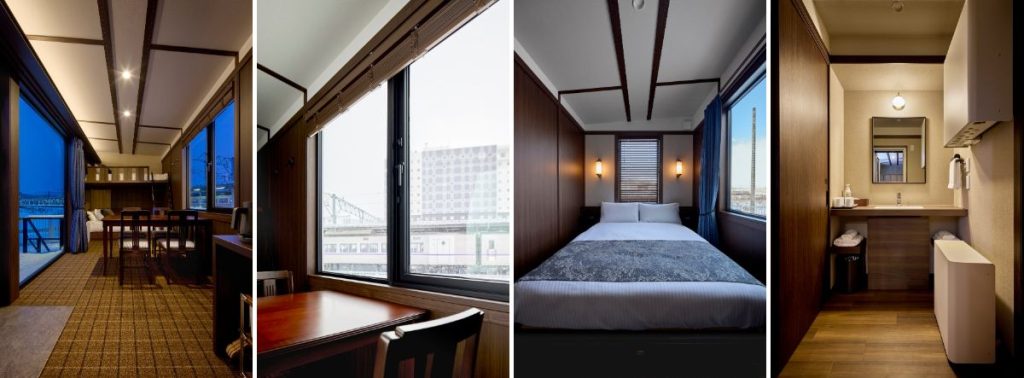 また、全5室の客室すべてに、停車中の車両や転車台を間近に眺めることができるウッドテラスを設けており、駅隣接地ならではの迫力ある景観をひとり占めする「特等席」を用意。