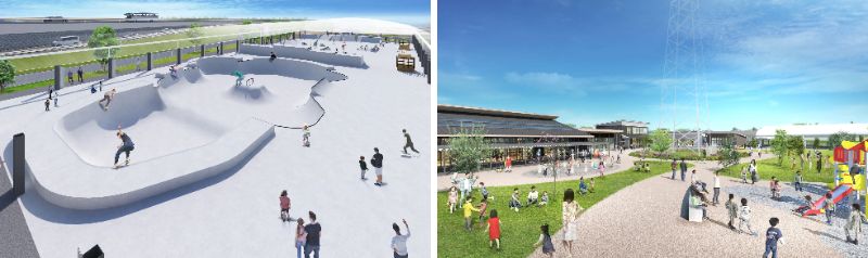 内容:スケートパーク、BMXパーク、屋根付き多目的広場、スポーツ用品店、産直店、園芸店、飲食店、管理事務所