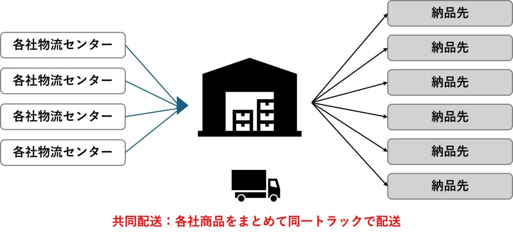 同取り組みでは、4社がそれぞれ各取引先へ配送していたトラックを一本化することによりトラック台数を削減し、輸送の積載率向上、ドライバー不足の軽減、物流コストの抑制、二酸化炭素削減による環境負荷の低減などへの貢献をするという。
