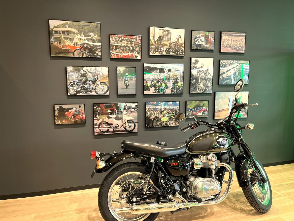 このほか、ライダーやこれからライダーになる来店者が集えるコミュニティスペースを設けているほか、カワサキの過去と未来のシーンを描いたグラフィックを展示する「ヘリテージウォール」も用意しているとのことだ。