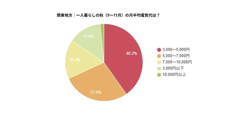秋の平均電気代を聞いたところ、「3,000~5,000円」と答えた人が40.2%で最多に。次いで「5,000~7,000円」が27.9%で、春と大きく変化のない分布となった。秋は春同様、冷暖房の使用が少なく、電気代は比較的安定する傾向があると同社は考察している。