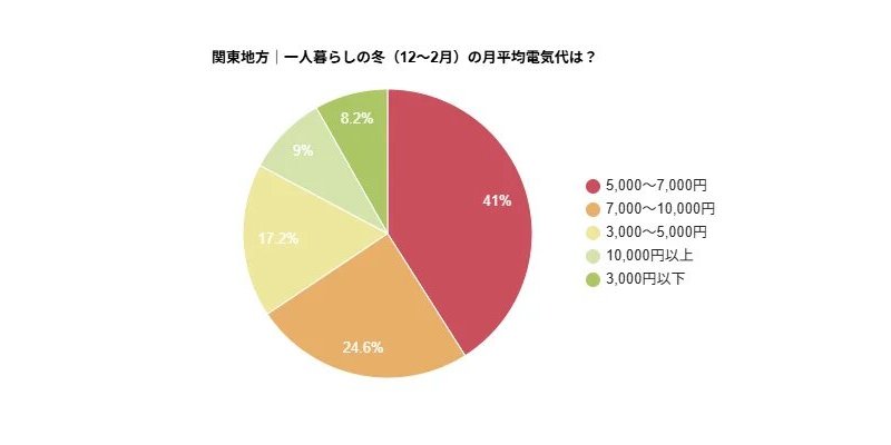 関東の単身世帯の1か月の平均電気代は「5,000~7,000円」が4割に 夏と冬は高額化の傾向