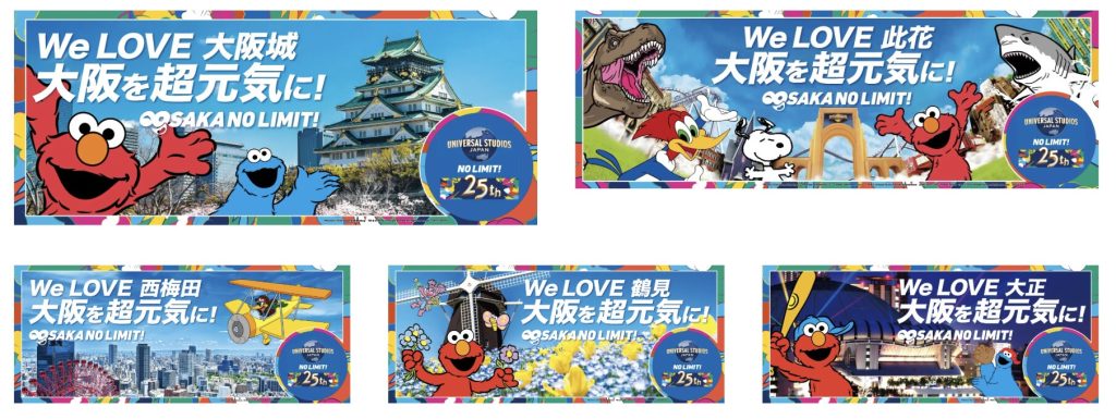 また、観光案内板では、パークの仲間たちと大阪市を代表する名所やエリアをモチーフにした11種類のデザインを制作し、3月から大阪市内約150カ所に順次掲示するという。これにより大阪観光の魅力発信と、USJの魅力に触れる機会の創出を図る。