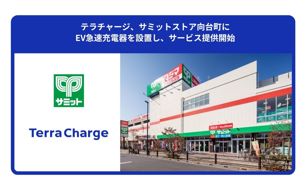 Terra Chargeは、サミットが運営する「サミットストア向台町店」に、最大出力50キロワットの急速EV充電器2基を設置し、サービス提供を開始したと発表した。
