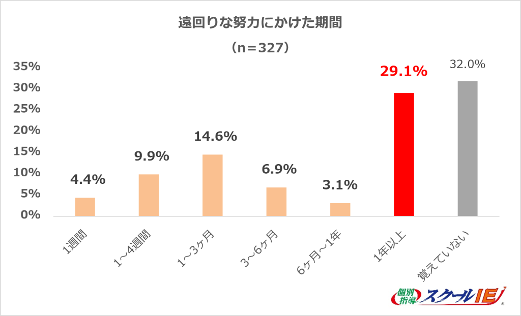 ■半数以上が「遠回りな努力」を経験。約3割は1年以上継続し、累計730時間を費やしていたことが明らかに