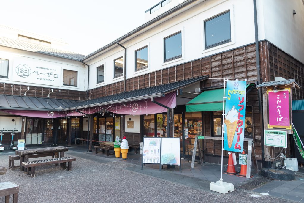さらに掛川市では、観光物産センター「こだわりっぱ」、イタリアンレストラン「ペーザロ」も運営している。「ペーザロ」の名は、掛川市が姉妹都市提携を結ぶイタリアのペーザロ市に由来しており、同地産のワインやオリーブオイルを使用した料理を楽しむことができる。