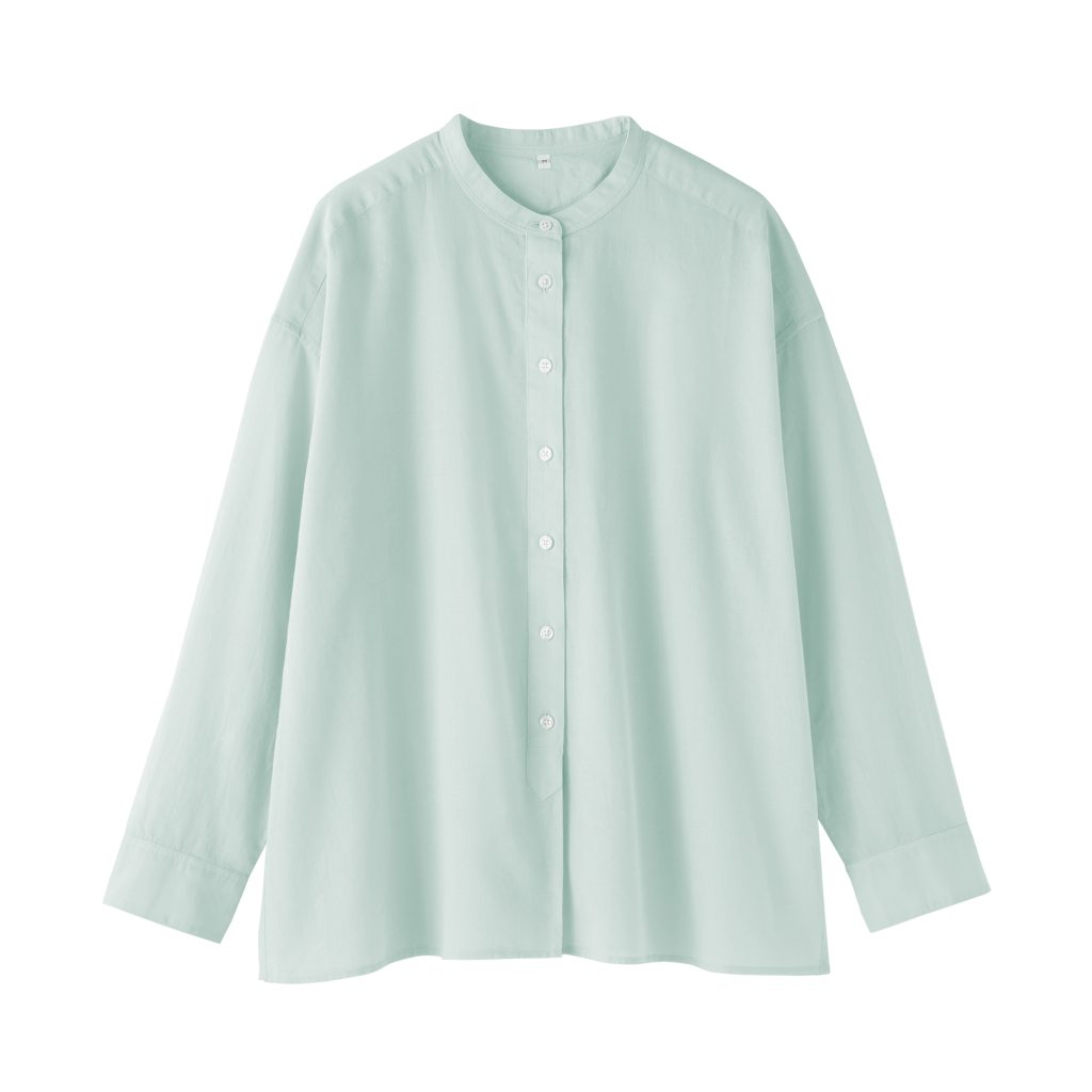 透け感のある素材で仕立て、軽やかな着心地が特長のスタンドカラーの長袖シャツ。程よい透け感が楽しめるオフ白ストライプ、やわらかい印象のライトブルーやコーデが締まる濃色を展開。