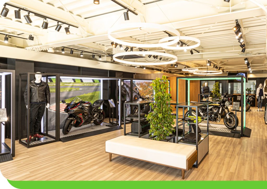 店内は最新のストアデザインを採用し、カワサキブランドを体感できる空間となっており、モーターサイクルの購入からメンテナンスまでを一貫してサポートするとしている。