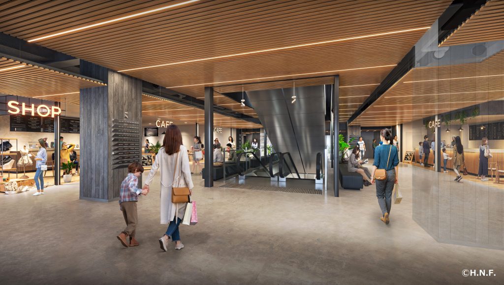 同施設は、Fビレッジ内の球場「ES CON FIELD HOKKAIDO」と、2028年に開業予定のJR千歳線新駅の間に位置する。新駅と球場を結ぶペデストリアンデッキと接続し、デッキからアクセス可能とする計画だという。
