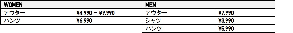 商品ラインナップ:ウィメンズ3アイテム、メンズ3アイテム