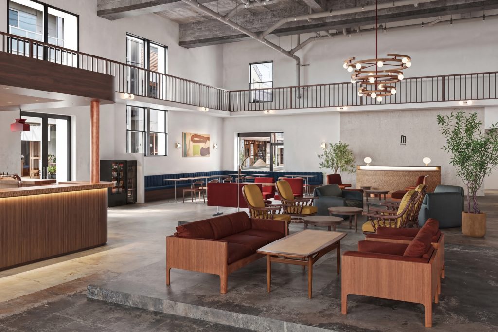 コーヒーショップや小さなパブの機能を備えつつ、観光や食事は街中での回遊を促し、街とともに滞在を楽しむホテルを目指すとしている。