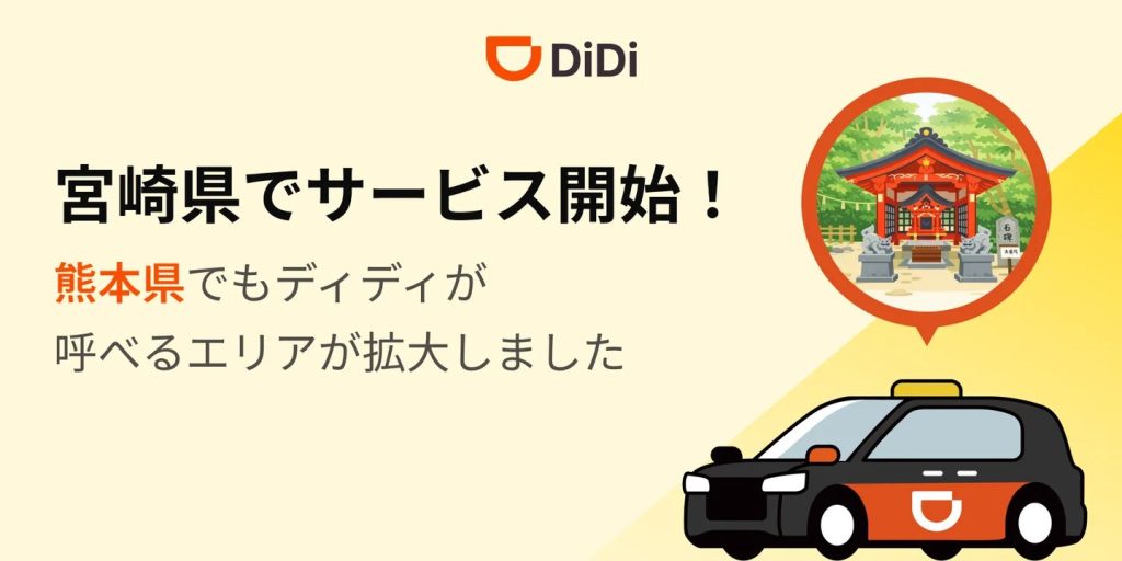 DiDiモビリティジャパンは、宮崎県の宮崎交通圏および熊本県山鹿市交通圏で配車アプリ「DiDi」のサービス提供を開始した。今回のサービス開始により、DiDiの国内サービス提供エリアは33都道府県となるという。