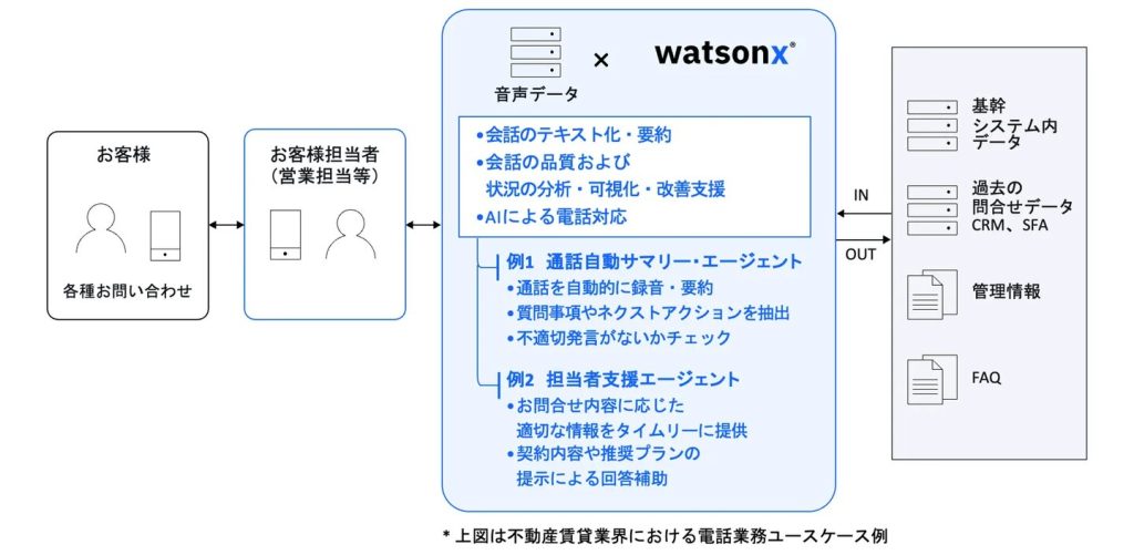 「AI×音声コミュニケーション」では、業界向けサービスの高度化を目的に、2025年7月から検討を開始。不動産賃貸業をユースケースとして、都築電気の音声基盤技術と、日本IBMのAIエージェント製品「watsonx Orchestrate」を組み合わせた音声AIソリューションのMVP(初期製品)の構築・検証を完了した。両社は継続して開発検証を進め、2026年7月をめどにサービス提供を開始する予定とのことだ。