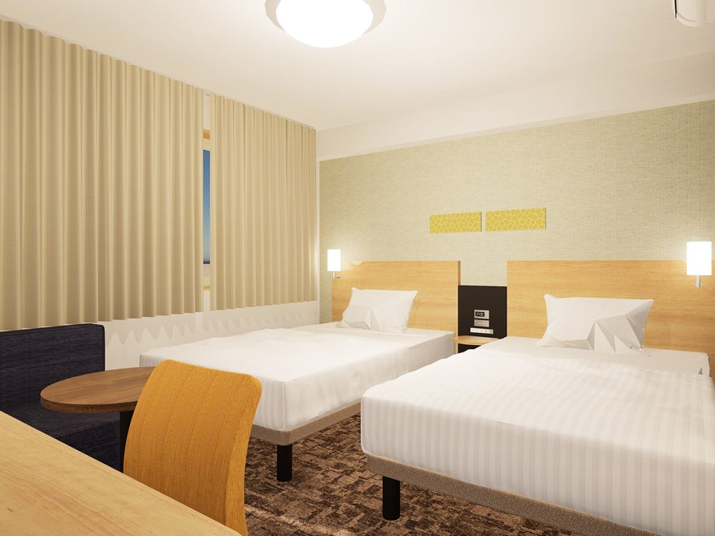 客室のアートパネルやエレベーターホールのデザインに、世界文化遺産「姫路城」をモチーフとした意匠を取り入れ、姫路市の魅力を感じられる空間へと刷新。また、客室には新たにUSBポートを設置し、機能面も向上するとのことだ。
