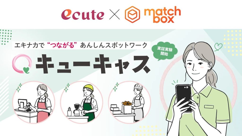 JR東日本クロスステーション デベロップメントカンパニーとMatchbox Technologiesは、JR東日本グループのエキナカ商業施設「エキュート」において、新たなスポットワークサービス「キューキャス」の実証実験を4月から7月末まで実施すると発表した。対象施設は、JR上野駅構内の「エキュート上野」と、JR日暮里駅構内の「エキュート日暮里」。