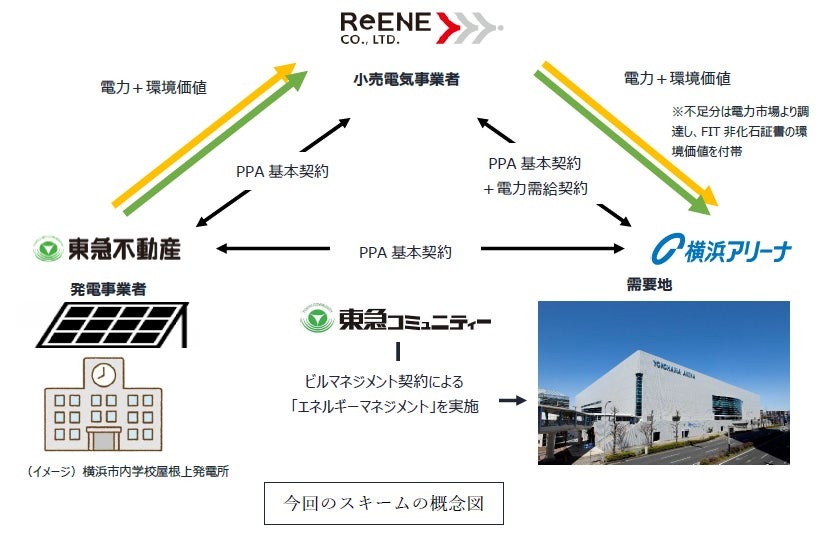 神奈川県「横浜アリーナ」に市内学校で発電した再エネ電力をオフサイトPPAで供給 東急不動産グループと連携