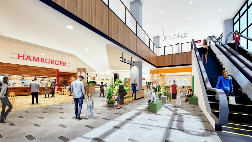 施設は2層構造で、1階には多彩な食の専門店を配置し、2階には核店舗を展開する。生鮮三品など鮮度にこだわった商品に加え、テイクアウトなど即食ニーズにも対応するという。