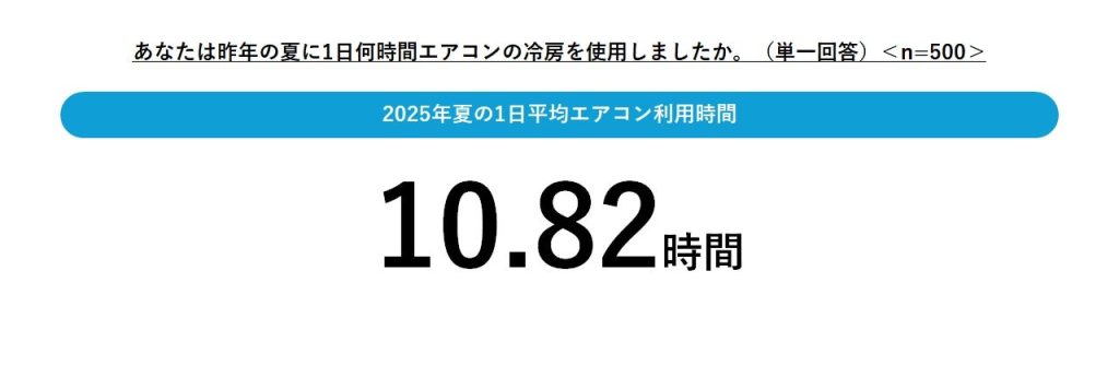 昨年の冷房使用開始時期を調査したところ、最多は「6月」(38.4%)となった。また、夏の1日あたりの平均使用時間は「10.82」時間と、1日の中で長時間エアコンを稼働している実態が浮き彫りに。