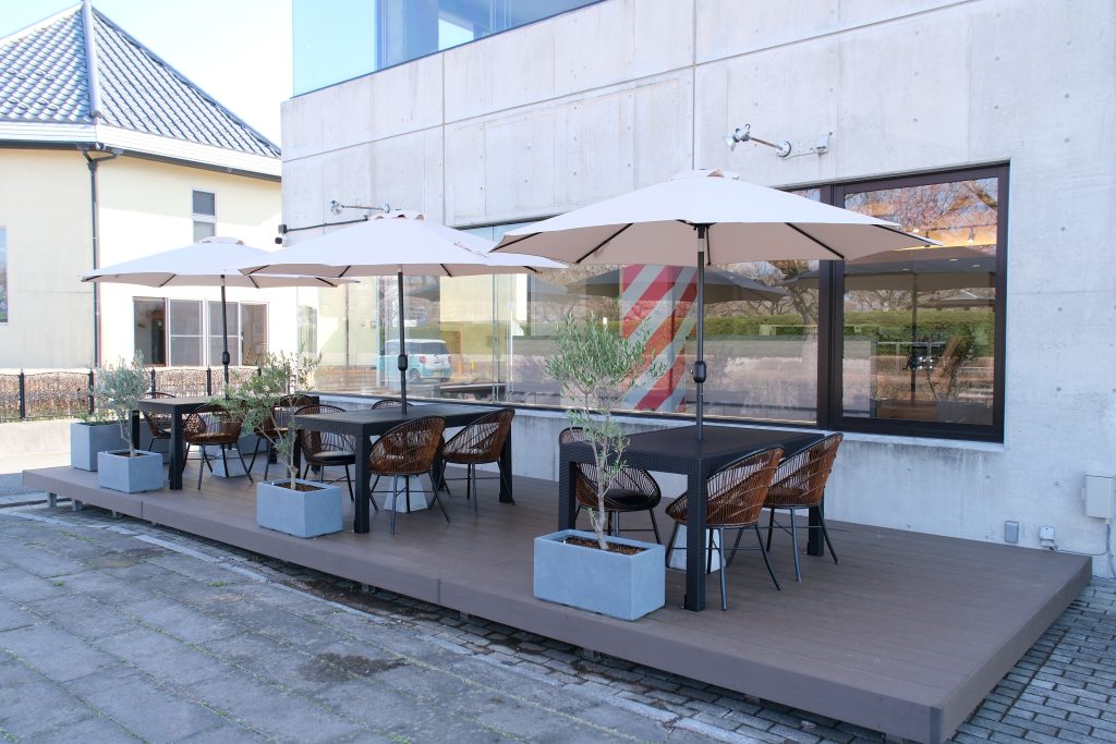 2階は、ヴィンテージ家具を取り入れたクラシカルなカフェスペース。大きな窓からは小峰城の天守を一望でき、歴史と日常が交差する贅沢な時間を楽しめるという。また、開放的なテラス席も併設し、散歩や観光の途中にも気軽に立ち寄れる、地域に寄り添う場所を目指すとしている。