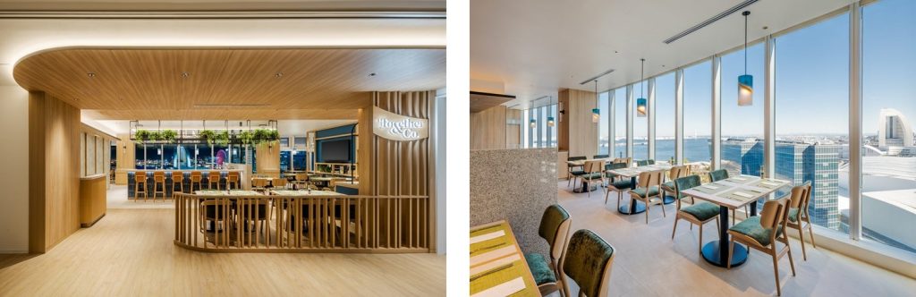 19階に位置するオールデイダイニング「Together & Co.」は、横浜港やベイブリッジを望む絶景のオーシャンビューが広がる全112席のダイニングで、朝食ビュッフェからランチ、ディナー、バータイムまで、一日を通して多彩なスタイルで利用可能。