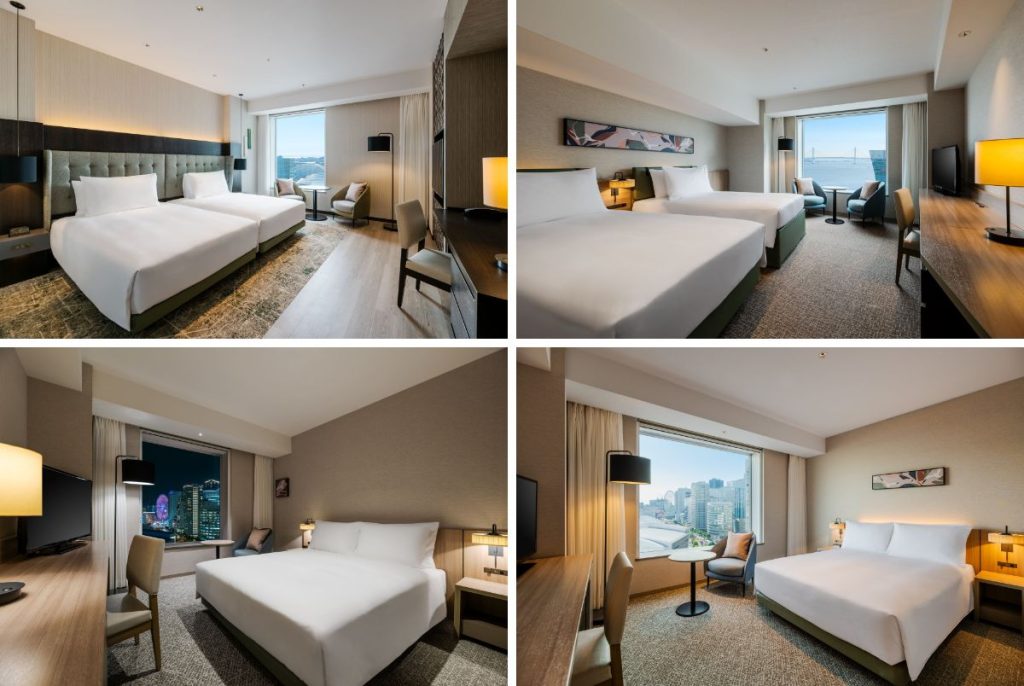地上20階建ての「ヒルトン・ガーデン・イン横浜みなとみらい」は、全228室の客室を完備。客室は、21平米のゲストルームから27~34平米のデラックスルーム、44平米のツインプレミアムルームまで、全13種類が用意されているという。