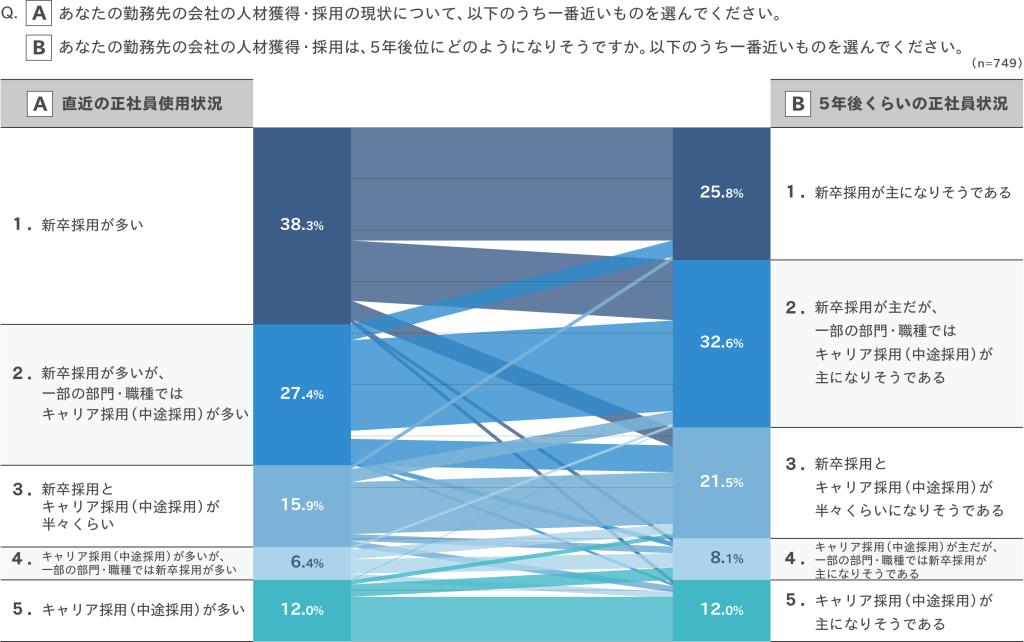 ・新卒採用とキャリア採用(中途採用)の採用構成の現状と見通し