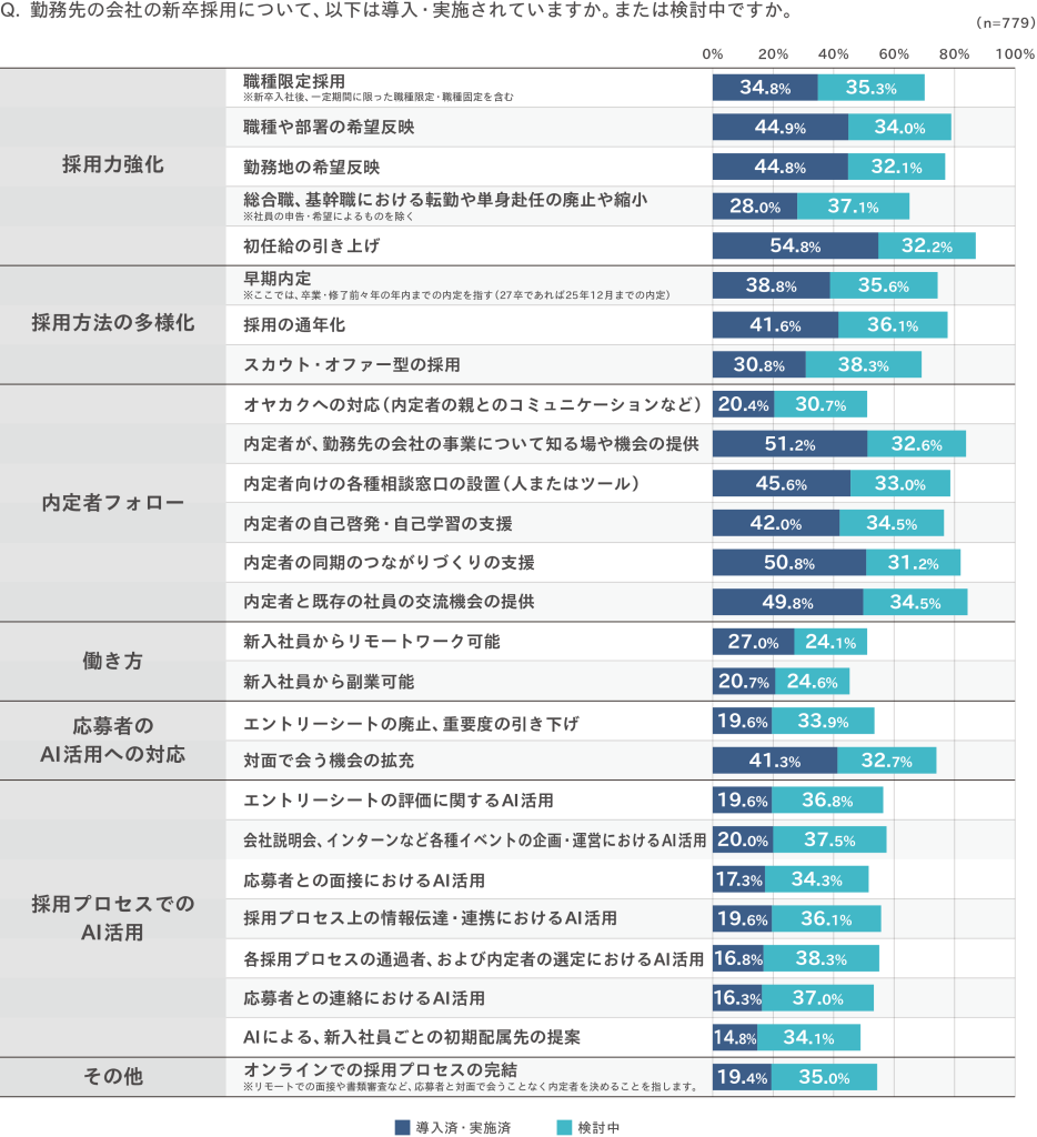 ・新卒採用に関する施策の導入状況