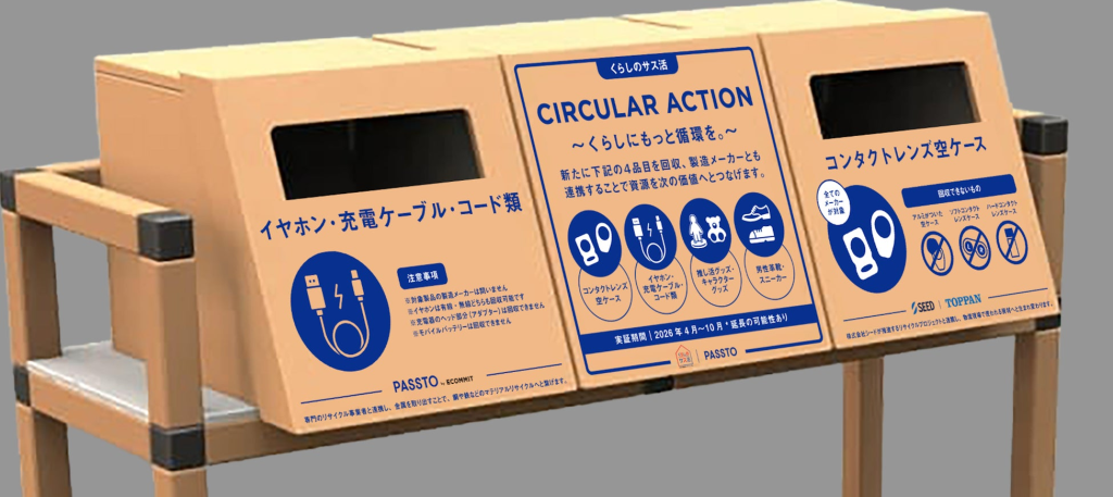 同取り組みは、循環型社会の実現を目指すプロジェクトの一環として実施するもので、資源循環サービス「PASSTO」を活用し、従来の衣類や雑貨に加え新たな回収品目を追加するという。