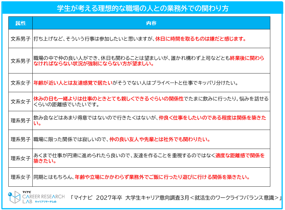 他にも、「休みの日も一緒よりは仕事のときにとても親しくできるぐらいの関係性」といった意見もあり、職場の人とのコミュニケーション自体を避けているのではなく、その重要性を理解しながら適度な距離での関わりを望んでいることがわかった。