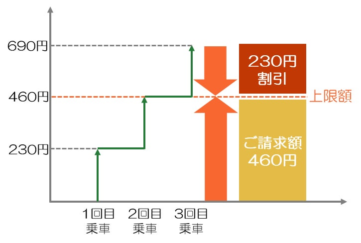 同上限運賃サービスは事前購入が不要で、クレカ乗車を利用することで自動的に適用されるとしている。