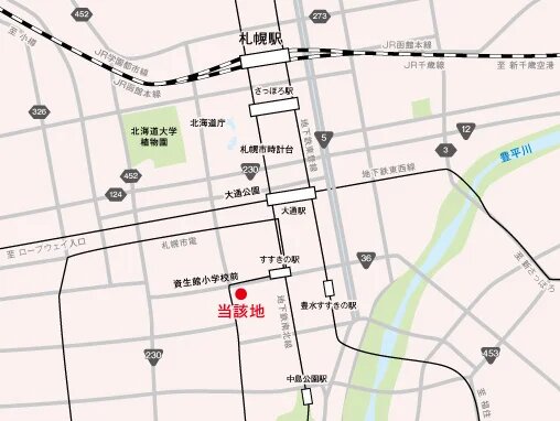 計画地は、札幌有数の繁華街である「すすきの」エリアの中心に位置する。札幌市営地下鉄南北線「すすきの」駅から徒歩5分、札幌市電「資生館小学校前」停留所から徒歩3分、札幌市営地下鉄東豊線「豊水すすきの」駅から徒歩8分の立地。