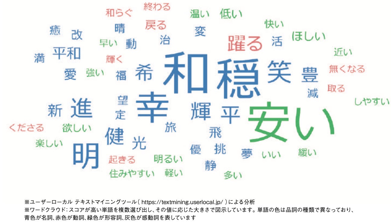 2023年は、新型コロナウイルス感染症の再拡大やロシアによるウクライナ侵攻など、世界情勢が大きく揺れ動いた年となり、国内では、物価高騰や円安などさまざまな問題が顕在化。人々の生活に大きな影響を与えた結果が反映され、2024年は平和で穏やかな世界になってほしいという願いが込められていると同社は推察している。