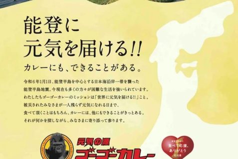 ゴーゴーカレー、能登半島地震復興支援で中間寄付を実施 408,755円を被災地へ