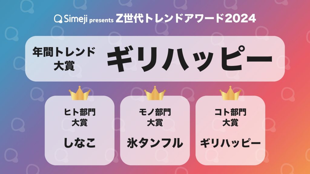 「Z世代トレンドアワード2024」大賞は「ギリハッピー」 「氷タンフル」「たまごっち」などもランクイン