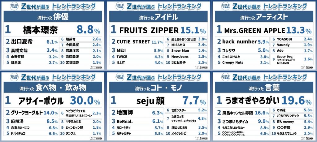 Z世代が選ぶ「2024年下半期トレンドランキング」が発表 「アサイーボウル」「○○界隈」などがランクイン